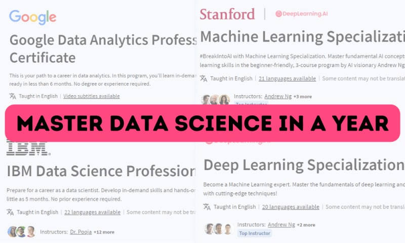 Learn data science through affordable and self-paced online courses. Complete courses in data analytics, data science, machine learning, and deep learning. Build practical skills and create a portfolio of data projects.