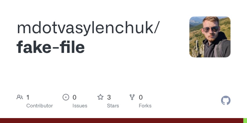 fake-file is a Ruby gem that generates temporary fake files (PDF, DOCX, XLSX) for testing purposes. It eliminates the need to store fixture files in test directories when testing file attachments with ActiveStorage, Shrine, or CarrierWave. The gem provides simple facade methods, a generic generator, and Rack::Test integration