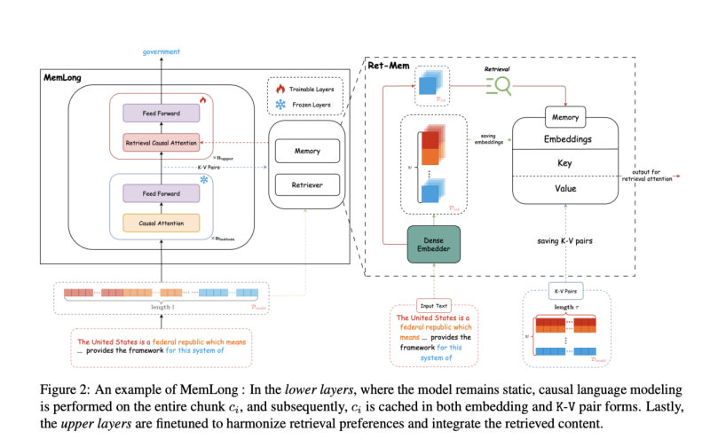 MemLong introduces a novel memory-augmented retrieval mechanism to tackle the limitations of handling long contexts in Large Language Models (LLMs). By integrating an external retrieval system, MemLong efficiently extends context length without sacrificing model performance. It stores past contexts in a memory bank, retrieves relevant historical data during text generation, and maintains distributional consistency. The approach significantly reduces training costs and has shown superior performance in long-context benchmarks, managing up to 80,000 tokens on a single GPU.