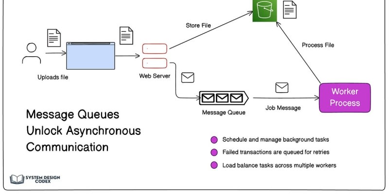 Message queues enable asynchronous communication between producers and consumers by storing messages in FIFO order. They are useful for processing background tasks, distributing tasks, email services, buffering, and payment retries. Message brokers manage these queues and provide additional features like message routing,