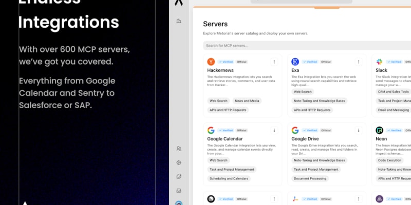 Metorial is an open-source integration platform that enables AI agents to connect with 600+ services through MCP (Model Context Protocol). It provides Python and TypeScript SDKs, one-line OAuth implementation, serverless deployment for custom MCP servers, and built-in observability. The team also released Starbase, a