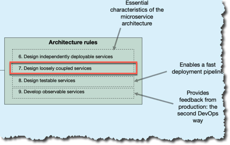 Microservices rule #7 focuses on designing loosely design-time coupled services, a key principle for effective use of microservices. This part explains the concepts of design-time coupling and cohesion, highlighting the benefits of loose design-time coupling. Future parts will cover how to design such systems and detect tight coupling.