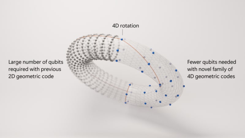 Microsoft has developed a new family of four-dimensional geometric error correction codes that significantly improve quantum computing reliability. These codes require fewer physical qubits per logical qubit, can detect errors in a single shot, and achieve a 1,000-fold reduction in error rates. The technology is integrated into