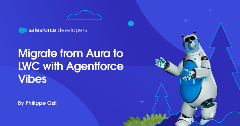 Agentforce Vibes and Salesforce DX MCP tools can streamline migrating legacy Aura components to modern Lightning Web Components. The migration process uses six specialized tools that orchestrate the conversion: creating blueprints, enhancing them, transitioning to LWC, and applying styling. A practical example migrating the