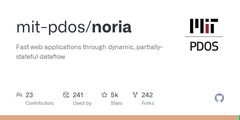 Noria is a streaming data-flow system designed to be a fast, read-heavy storage backend for web applications. It precomputes and caches relational query results to enhance read performance and automatically updates cached results as the underlying data changes. Noria supports dynamic data-flow and query changes, and provides