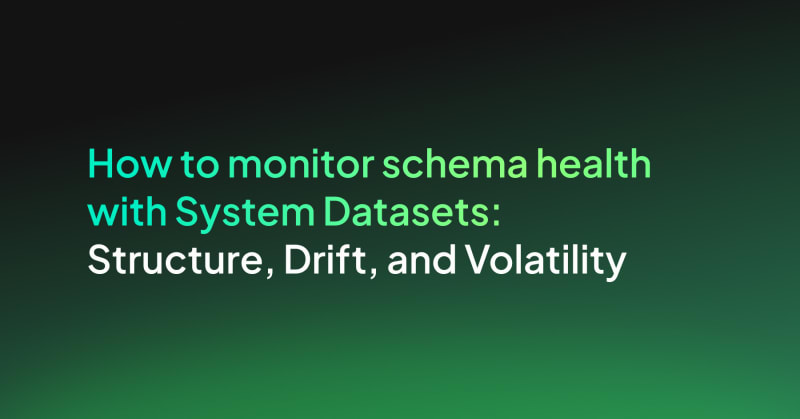Coralogix's engine.schema_fields dataset provides automatic schema versioning for observability pipelines, tracking structural changes over time without manual commits. The post covers three dimensions of schema health: Structure (auditing current field types and cardinality), Drift (detecting which datasets change most