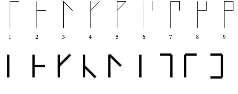 A developer creates a generator for Cistercian numerals, a 13th-century monastic system that represents numbers 1-9999 as single characters. The project includes a web-based generator, a Cistercian clock, and two JavaScript libraries: a simple Node/browser converter that outputs SVG strings, and an advanced version with