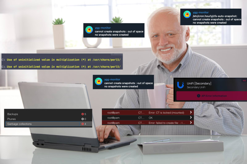 A collection of homelab lessons learned covering NVMe SSD installation on Raspberry Pi 5, ARM64 Proxmox deployment challenges including OOM kills and BIOS configuration, Proxmox Backup Server deadlock issues when ZFS volumes fill completely, and various tools including CyberPower UPS management software, Davis CalDAV server,