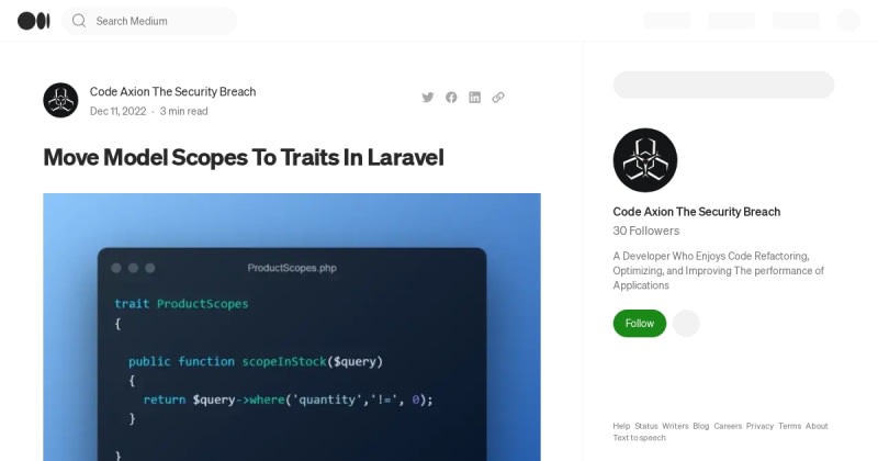 Move Model Scopes To Traits In Laravel Link is the all-in-one monitoring tool for your entire website. We monitor uptime, SSL certificates, broken links, scheduled tasks and more. You'll get a notifications for us when something's wrong.