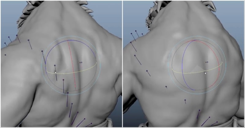 Yang Xiao demonstrates a work-in-progress muscle rig workflow in Maya using ribbons and Mutant Tools, a block-based rigging framework by Blue Tape Rigging Studios. The workflow is applied to a model by Ethaniel Baker and showcases modern rigging techniques designed for speed and stability in Maya pipelines.