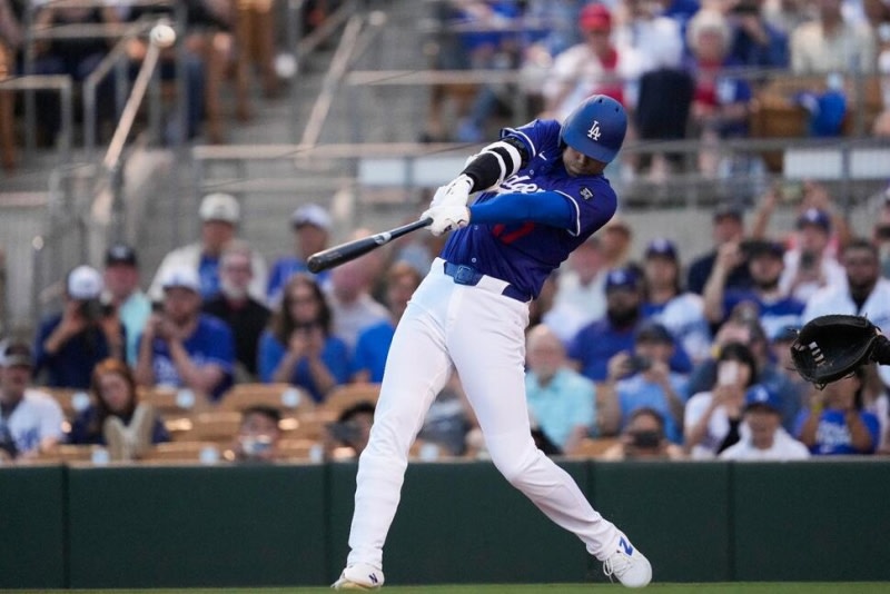 다저스 스타 오타니 쇼헤이, 오프시즌 어깨 수술 후 첫 스프링 타석에서 인사말 타격