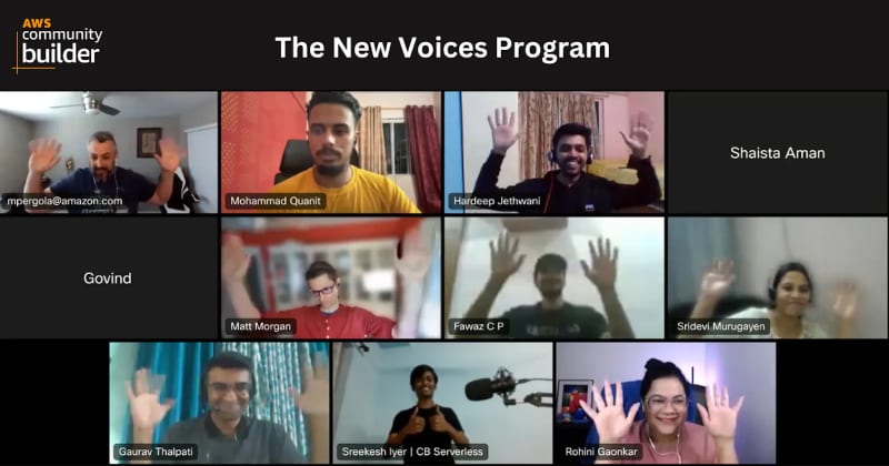 The post discusses the author's experience with the AWS Community 'New Voices' Program and highlights how it helped them improve their public speaking skills.