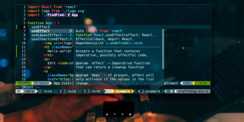 Ingredientscraftzdog / dotfiles-publicContentsNeovim setupPrerequisites — iTerm2 and Patched Nerd FontInstall Neovim via HomebrewDirectory structureInstall plugin manager: PackerColor scheme: NeosolarizedStatus line: LualineLspconfigAuto-completion: Lspkind and cmpSyntax highlightings: TreesitterAutotag and AutopairFuzz finder: TelescopeTabs: BufferlineLSP Uls: LspsagaCode formatter: Prettier and null-lsGit markers: gitsignsgitLSP tool: masonFollow me online5 Comments