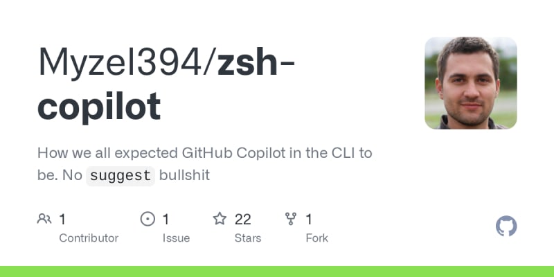 Get true suggestions in your shell with zsh-copilot by pressing CTRL + Z. Install the plugin via GitHub, ensure you have an OPENAI API key with GPT-4 access, and expose it through an environment variable. For configurations, use the command zsh-copilot --help.
