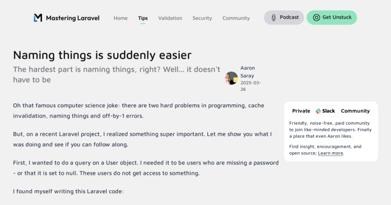 Oh Dear is an all-in-one monitoring tool that provides uptime monitoring, SSL certificate checks, broken link detection, and more, with a user-friendly API and excellent documentation. The author shares programming tips, tutorials, and opinions through various platforms and a monthly newsletter, focusing on Laravel and modern PHP development.