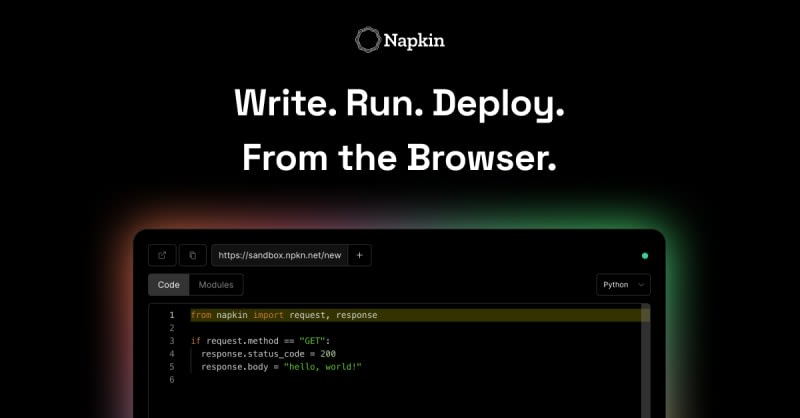 Build production-ready API endpoints. No infra. No boilerplate. Just code. Runnable Run and view your code response immediately. Test, lint, and view code errors right in the browser. Your code is automatically saved and backed up in the cloud.
