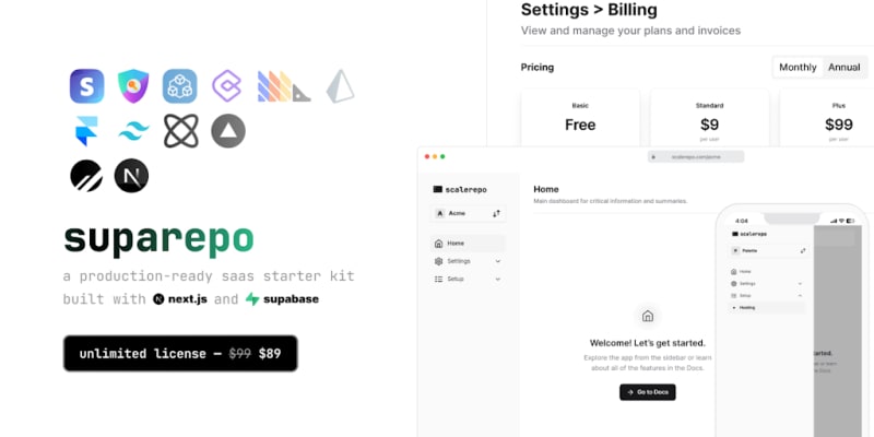 Neorepo provides starter kits for SaaS apps built with Next.js, including features like auth, onboarding, org management, transactional emails, payments, and testing. Recent launches include Suparepo and Scalerepo.