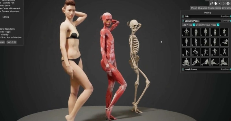 HAELE 3D is developing Pose Studio, a new 3D anatomy reference app for character artists. The tool allows fully editable full-body poses with the ability to switch between muscular and skeletal systems, as well as realistic and stylized models. This joins HAELE 3D's existing suite including Hand Poser and Portrait Studio. The app is currently in development.