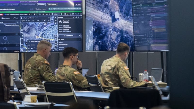 Palantir Technologies has a permanent desk at the U.S.-led Civil Military Coordination Center (CMCC) in southern Israel, where it provides AI-powered tracking of humanitarian aid deliveries into Gaza. Sources from the diplomatic community describe Palantir integrating convoy and distribution data into its systems, with