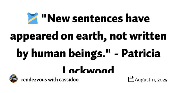 🎽 "New sentences have appeared on earth, not written by human beings." - Patricia Lockwood