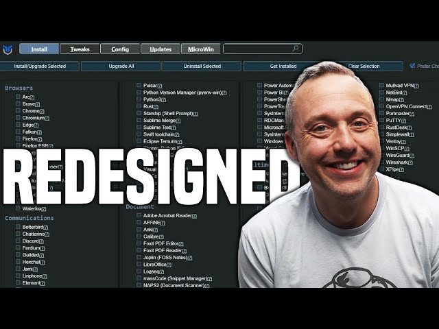 The post covers a new redesign of a Windows utility tool, explaining various tweaks and features like the ability to choose between Winget and Chocolatey for installations, and improvements on telemetry and task management. It also includes a guide for performing a minimal Windows installation using MicroWin, aimed at reducing