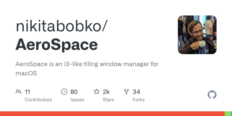 AeroSpace is an i3-like tiling window manager for macOS that provides manual tiling, dotfiles friendly configuration, CLI scripting, multi-monitor support, and more.