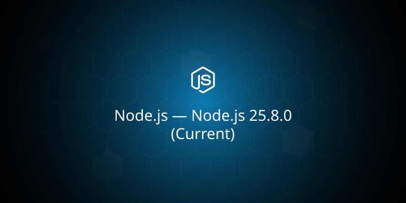 Node.js 25.8.0 (Current) has been released with several notable changes: new `limits` property added to `DatabaseSync` in the built-in SQLite module, C++ support for diagnostics channels, a new `--permission-audit` flag for permission auditing, and worker ID exposure in the test runner for concurrent test execution. Additional