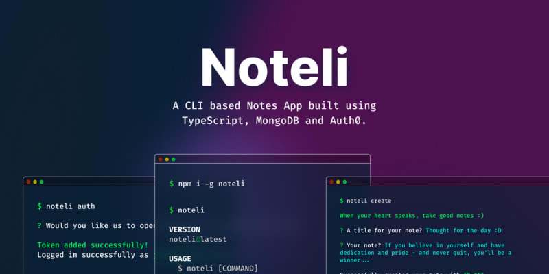 Noteli is an Open Source CLI tool made especially for note-taking. Built using powers of TypeScript and security of Auth0 with MongoDB. Noteli would help developers to take notes quickly from the shell without wasting time through GUI :P Embed Collect Embed collect.