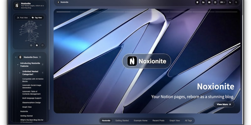 Noxionite is a free, open-source engine that transforms Notion pages into fast, beautiful blogs. It features graph view, automatic social images, multi-language support, and glassmorphism design, making it easy to create professional blogs directly from Notion content.