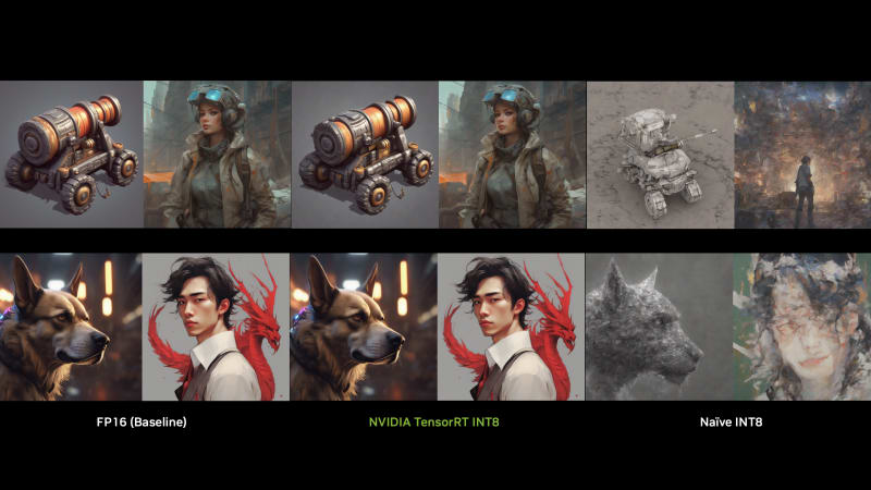 NVIDIA TensorRT has developed an 8-bit post-training quantization toolkit to speed up diffusion deployment on NVIDIA hardware while preserving image quality. The performance of TensorRT INT8 and FP8 quantization recipes for diffusion models achieve significant speedups on NVIDIA RTX 6000 Ada GPUs. SmoothQuant is a popular PTQ