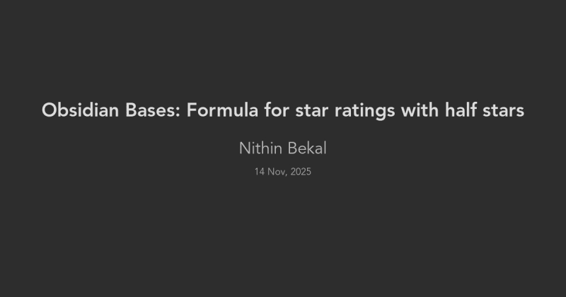 Learn how to create custom star rating displays in Obsidian Bases using formulas. The tutorial covers displaying whole star ratings using emoji and icons, then extends the formula to support half-star ratings by checking decimal values and adding appropriate symbols. The final solution combines star emojis with the ½ character
