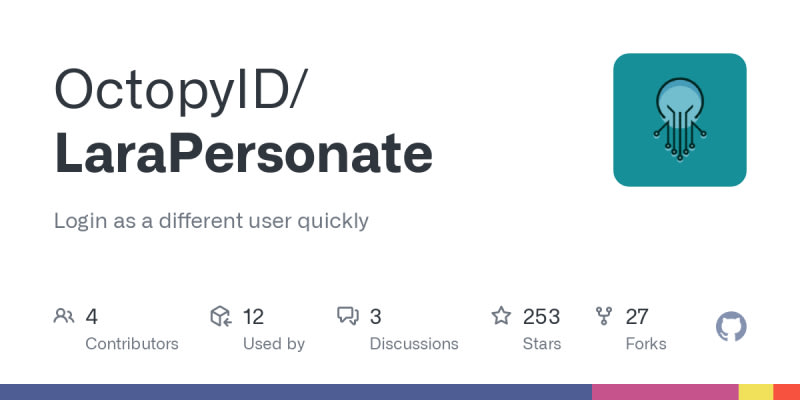 OctopyID/LaraPersonate is an Impersonation package for the Laravel Framework that allows you to easily impersonate other users. This post provides installation instructions, explains how to add the HasImpersonation trait to the User model, and discusses the events available with the package.