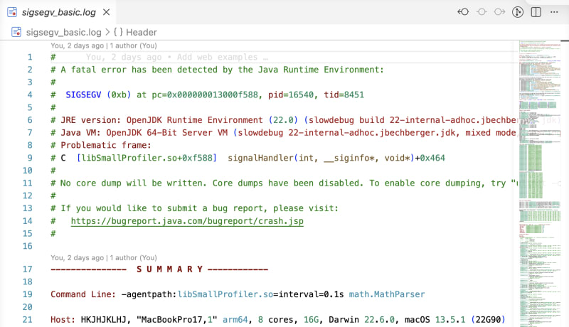 A deep dive into HotSpot error files (hs_err), the crash reports generated when a JVM crashes. Covers the structure of these files including the header/summary, thread section, process section, events, and dynamic libraries subsections. Also introduces two new tools: a VSCode syntax highlighting extension for hs_err files, and