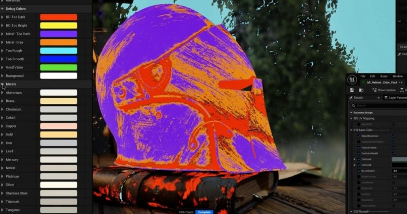 RonanMahonArt released PBR Check, a tool for Unreal Engine 5 that automatically detects material errors using color-coded overlays and provides one-click fixes. The tool features a validation view mode, direct viewport material editing, reference charts for different material types, and customizable validation rules to