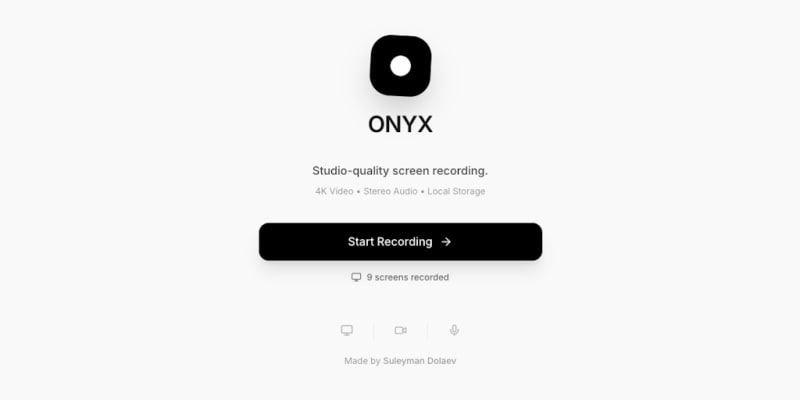 Onyx is a free, privacy-focused screen recorder that runs entirely in the browser without requiring cloud uploads or subscriptions. It captures studio-quality 4K video with high bitrate, storing recordings locally on your device. The tool eliminates common limitations like time restrictions and quality downgrades found in