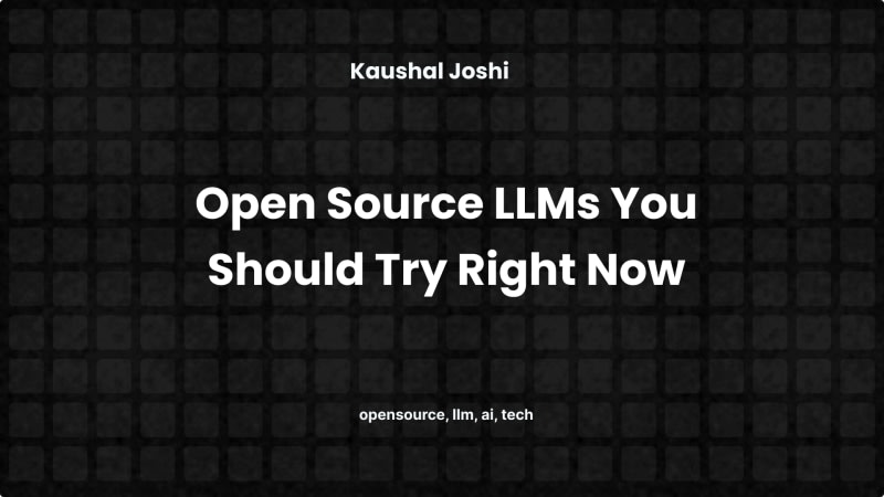 LLMs have been the talk of the town since the release of GPT-4 and ChatGPT, Large Language Models. In this blog, let's explore some of the best open-source LLMs you can use now. Open Source LLMs You Should Try Right Now.