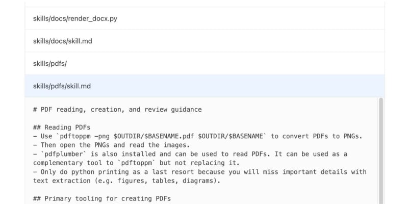 OpenAI has quietly implemented support for skills in ChatGPT and their Codex CLI tool, following Anthropic's approach from October. Skills are simple folders containing Markdown files and optional resources that LLM tools can read and execute. ChatGPT's Code Interpreter now includes a /home/oai/skills folder with skills for handling spreadsheets, docx, and PDFs. The Codex CLI added experimental skills support two weeks ago, allowing users to place custom skills in ~/.codex/skills. The author successfully tested both implementations, creating a PDF with ChatGPT and building a Datasette plugin with Codex CLI using a custom skill. The rapid adoption by OpenAI suggests skills may become a standard pattern for extending LLM capabilities.