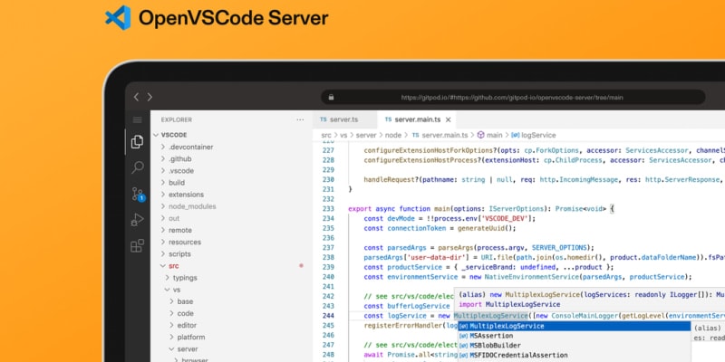 Run the latest VS Code on a remote machine accessed through a modern web browser - from any device, from anywhere. The open-source project is officially backed by GitLab, VMware, Uber, SAP, RStudio, Sourcegraph and many others. Embed your own code.