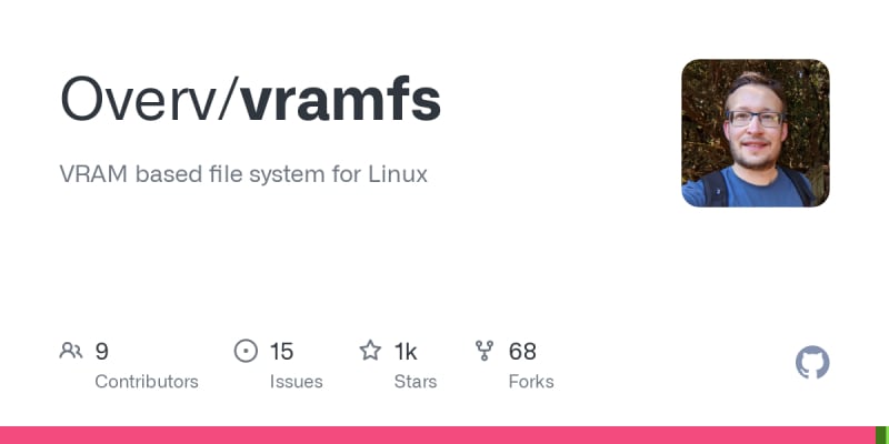vramfs is a utility that employs the FUSE library to create a file system in the VRAM of a discrete graphics card. It offers notable read speeds (~2.4 GB/s) and write speeds (2.0 GB/s), leveraging consumer GPUs with 4GB or more VRAM. The setup involves installing OpenCL drivers, libfuse3-dev package, and other prerequisites.