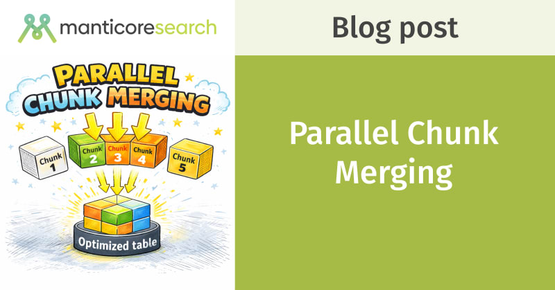 Manticore Search 24.4.0 introduces parallel RT disk chunk merging and N-way merge jobs, replacing the old serial two-chunk-at-a-time compaction model. Two new settings control the behavior: `parallel_chunk_merges` (concurrent merge jobs) and `merge_chunks_per_job` (chunks per job). Benchmarks on 10M documents show compaction