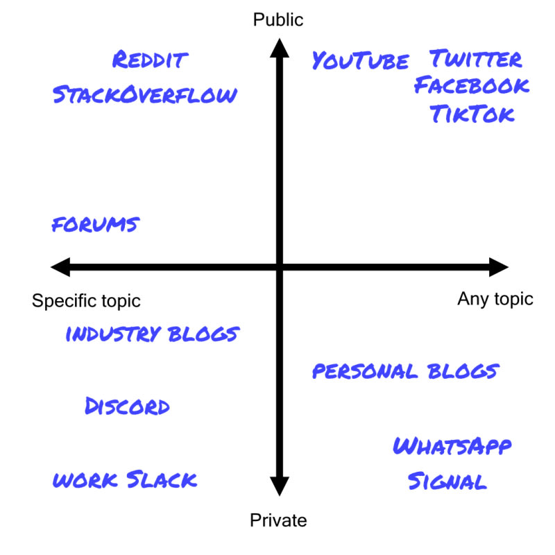 Social media, especially Broad-Public platforms like Twitter and Facebook, can be a waste of time. Instead, be intentional about what social media you use and consider focusing on non-broad-public options. Content creation on social media may not have a significant impact, so consider other avenues like writing a book, creating a course, or building a game.