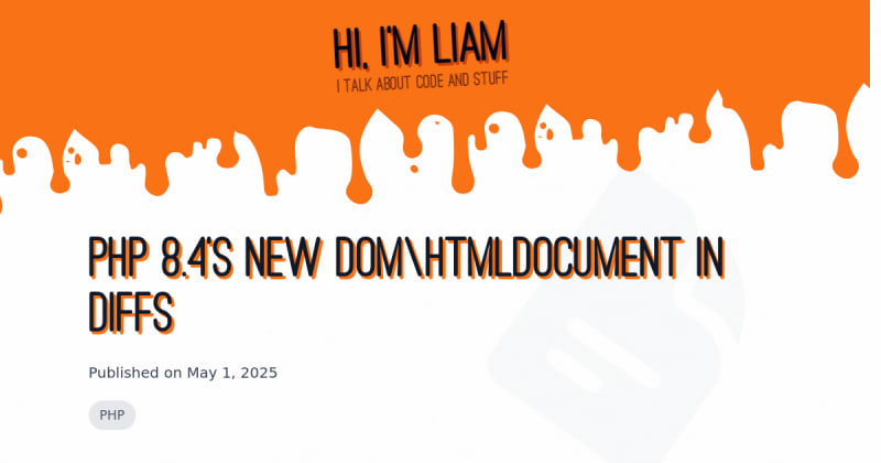 PHP 8.4 introduces a new Dom\HTMLDocument class that provides improved HTML document handling with better standards compliance and fixes for long-standing bugs present in the legacy DOMDocument class. This new implementation makes HTML manipulation more reliable and easier to work with for developers.