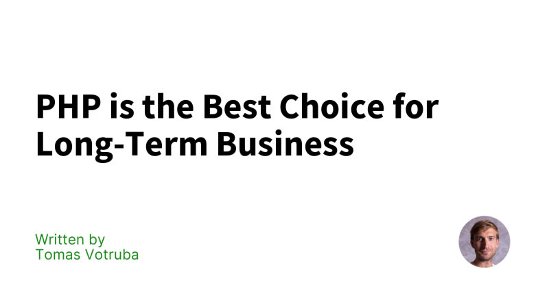 PHP is highlighted as the best choice for long-term business stability due to its mature ecosystem, time-tested frameworks like Symfony and Laravel, and advanced tools like PHPStan and Rector. The post contrasts PHP's longevity and stability with the rapidly changing JavaScript framework landscape, emphasizing the cost