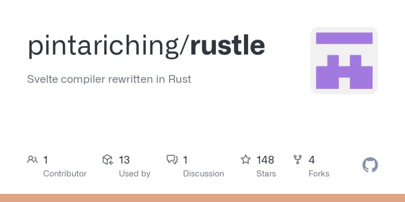 Rustle The Svelte compiler, rewritten in Rust, is still a big work in progress. I came up with the name rustle by combining rust and svelte (ruslte => rustle) The project is open to naming suggestions!