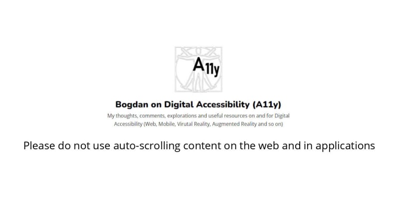Auto-scrolling content creates serious accessibility problems, particularly for Android TalkBack screen reader users who experience constant, annoying audio cues (earcons) that make apps nearly unusable. The issue affects both native mobile apps and web pages on Android, though iOS VoiceOver is unaffected. Beyond screen reader