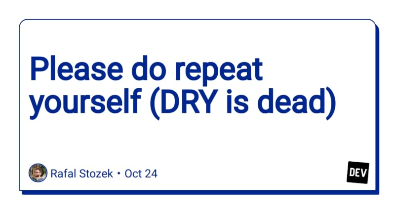 Don't repeat yourself (DRY is dead) is the root of all software evil, says John Sutter. Repeating yourself is basically giving yourself the time and space to come up with the right abstractions instead of engaging in guesswork and clairvoyance.