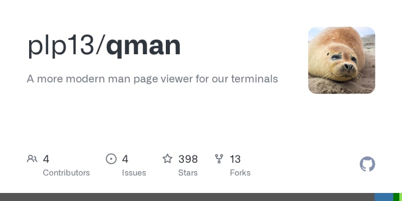 Qman is a modern terminal-based manual page viewer written in plain C, designed as a feature-rich replacement for the traditional `man` command. Version 1.5.1 is the latest release, with 1.5.0 introducing support for multiple man page systems (mandb, mandoc, FreeBSD, macOS/Darwin), filesystem hyperlinks, new themes including