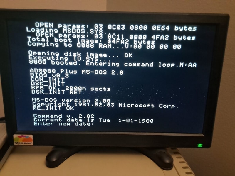 Seth Kushniryk discovered that no surviving copies of MS-DOS 2.0 exist for the ALF Products AD8088 co-processor card used in Apple IIe systems. He undertook a port using the MS-DOS 2.0 OEM Adaptation Kit, successfully getting it to boot. Remaining issues include clock encoding differences between ProDOS and MS-DOS, console