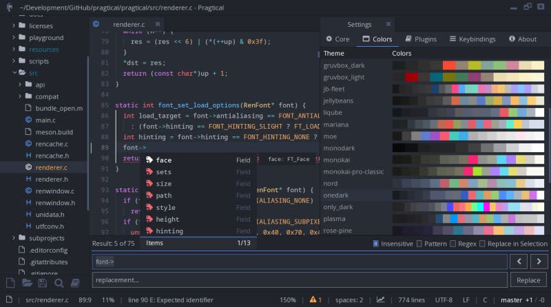 Pragtical is a lightweight, powerful, and hyperextensible code editor that consumes minimal resources. It boasts features such as syntax highlighting, multiple cursors, and a command palette, with additional capabilities available via plugins. The editor can be easily extended using Lua and its C API and is compatible with