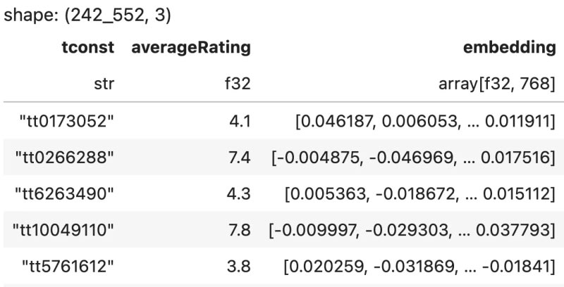 A comprehensive exploration of using text embeddings to predict IMDb movie ratings, comparing traditional statistical models, neural networks, and training LLMs from scratch. The author processes IMDb datasets using Polars, generates embeddings with ModernBERT, and evaluates multiple modeling approaches including Support Vector